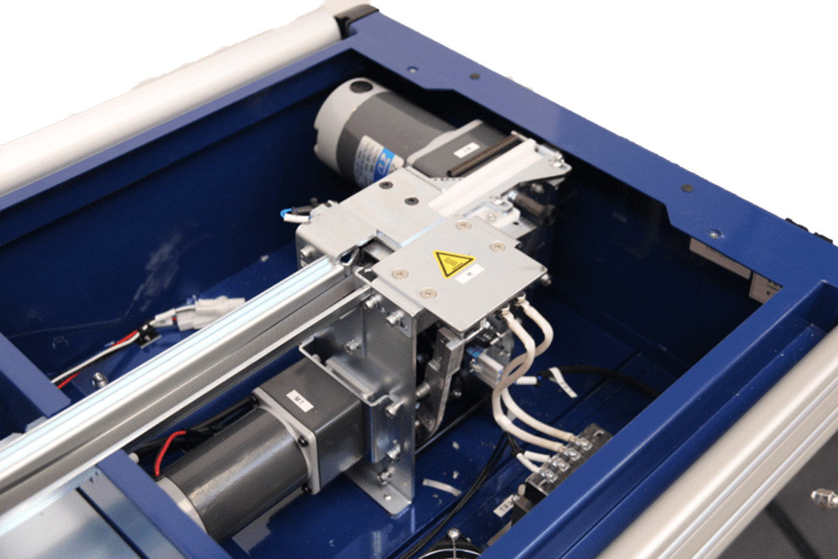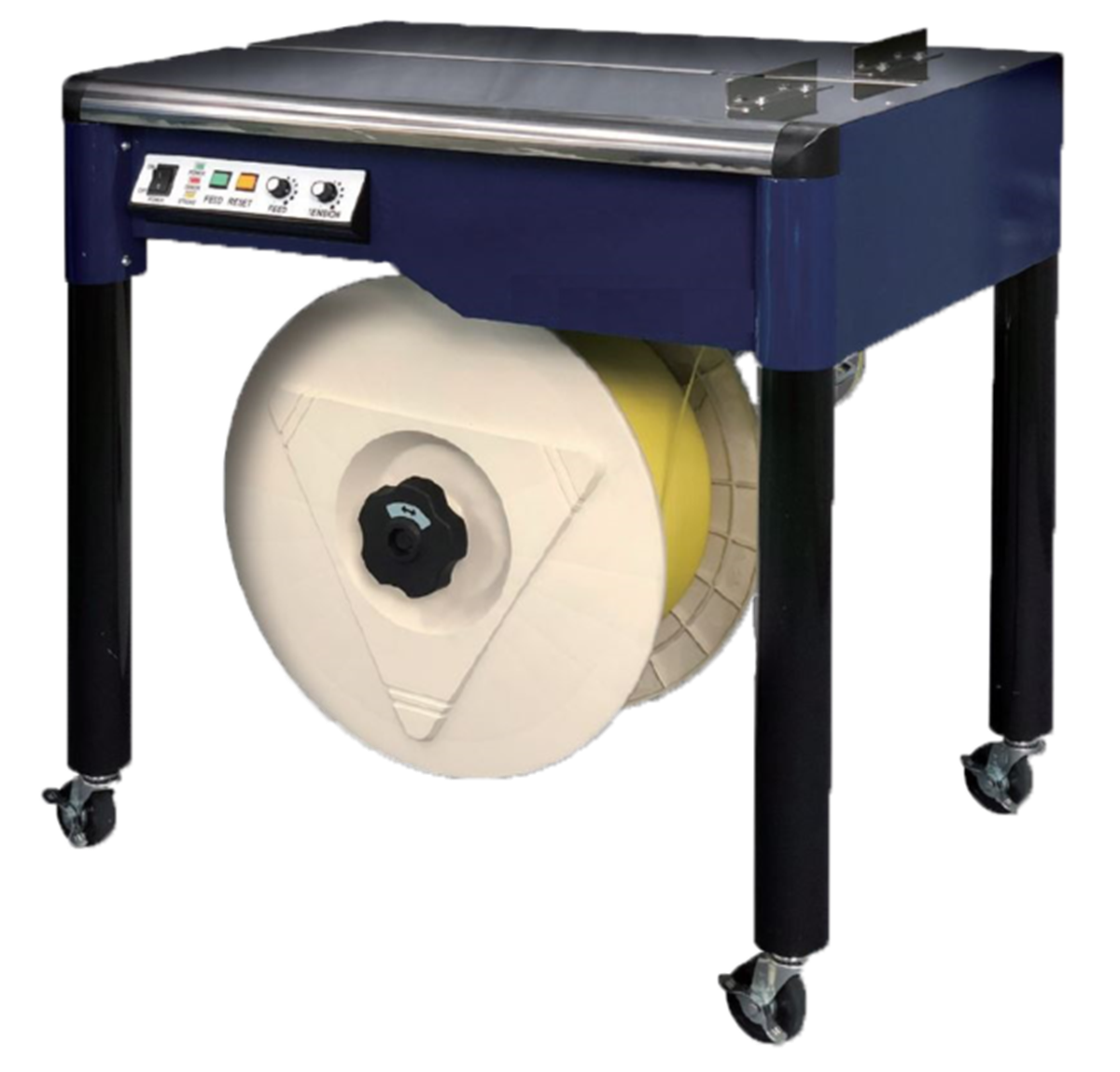Halvautomatisk bandningsmaskin för bandning av gods med olika storlekar. För PP-band med bredd 9 och 12 mm. Drar åt och svetsar bandet automatiskt. Minsta godsmått: 100 x 30 mm.