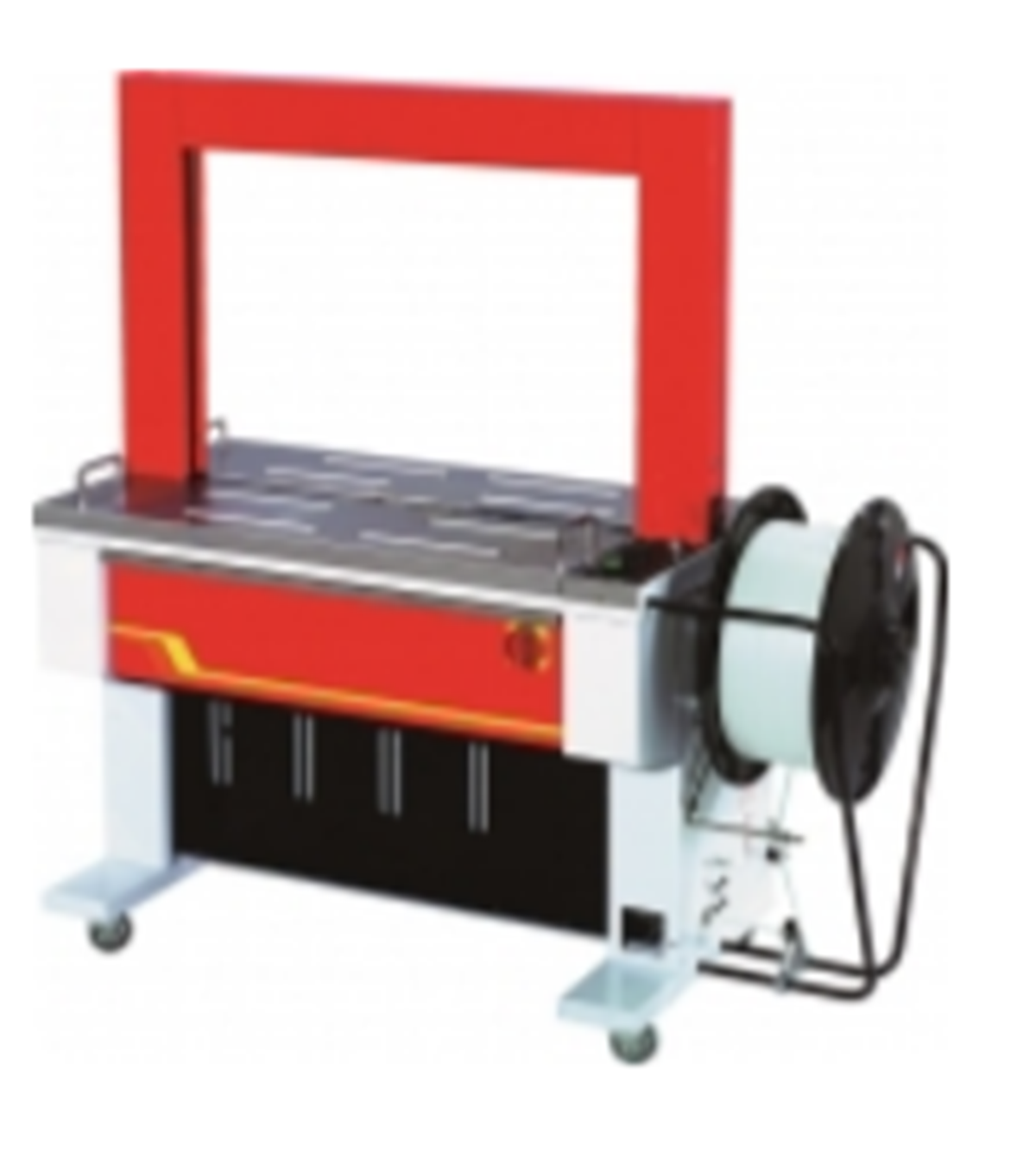 En helautomatisk bandningsmaskin med bältstyrt bord och tryckpress. Enkel och mycket pålitlig maskin. För 8–12 mm band. Bandtryck: 7–70 kg. Klarar upp till 29 paket i minuten. Arbetshöjd: 810 mm. Höjd x bredd: 1540 x 1430 mm. Bordsbredd: 620 mm. Båge: 850 x 600 mm. Ansluts till 220 V.