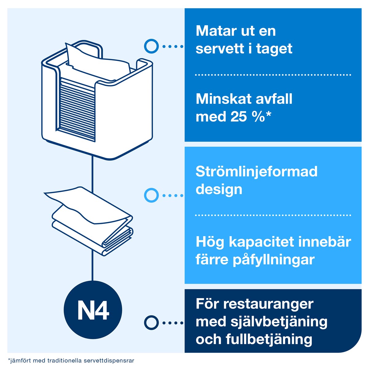 Utmatning av en servett i taget minskar avfall Tillverkad av äkta trä Kompakt design Hög kapacitet leder till färre påfyllningar