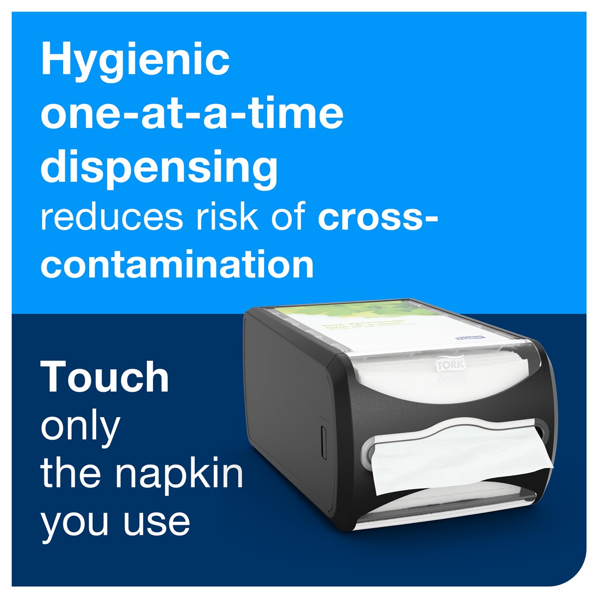 Liggande servettdispenser som kan staplas ovanpå varandra. Placera eget budskap i reklamrutan. Rymmer 550 st N4-servetter. Format: H14,5 x B19,1 x D30,5 cm.
