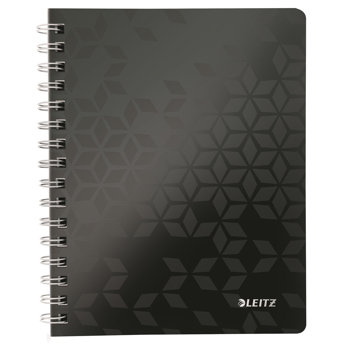 Anteckningsblock i PP av hög och tålig kvalitet. Ficka för förvaring av lösa dokument. Flyttbar linjal. 80 g linjerat papper med sidenmatt yta. 80 blad. Mikroperforerat. Hålat.