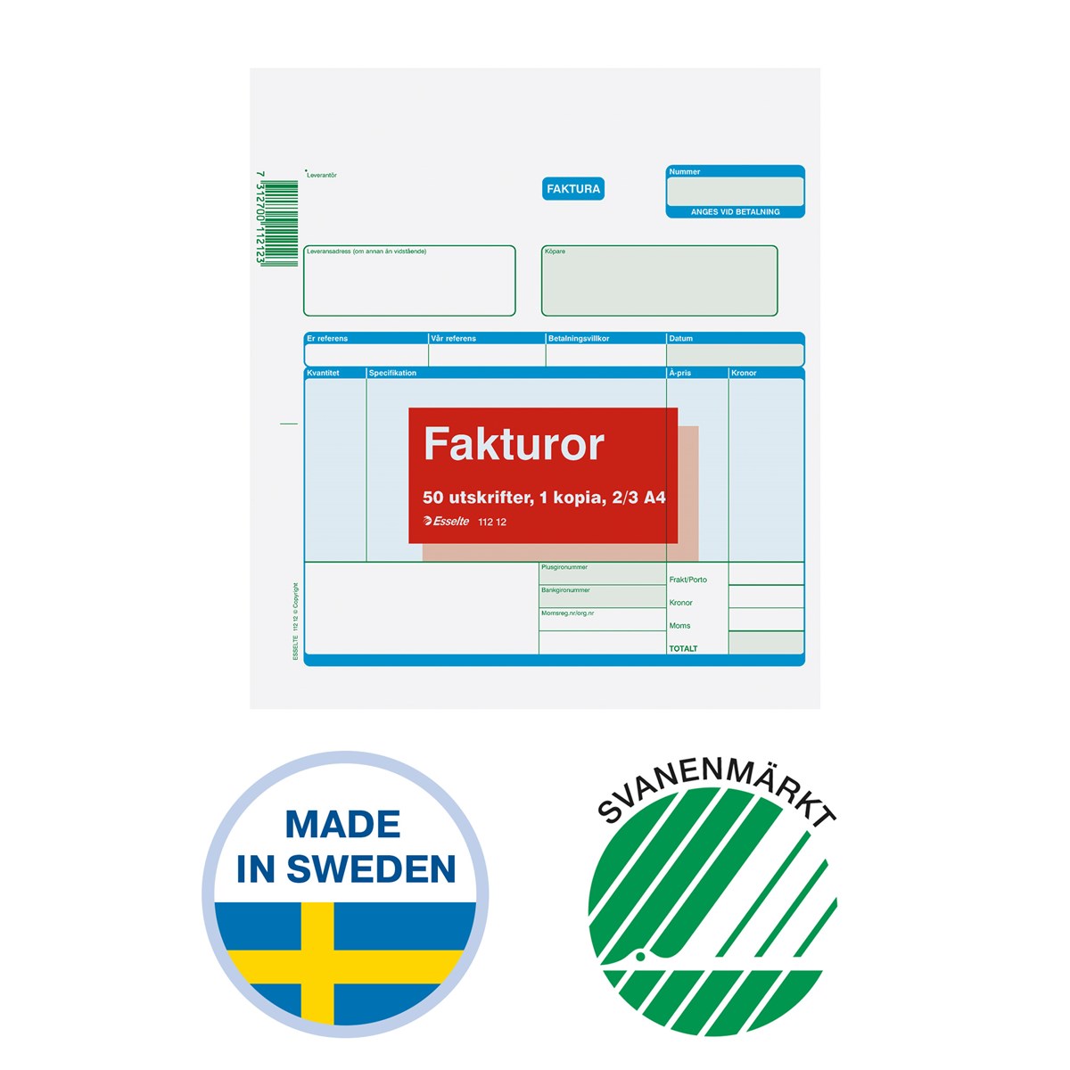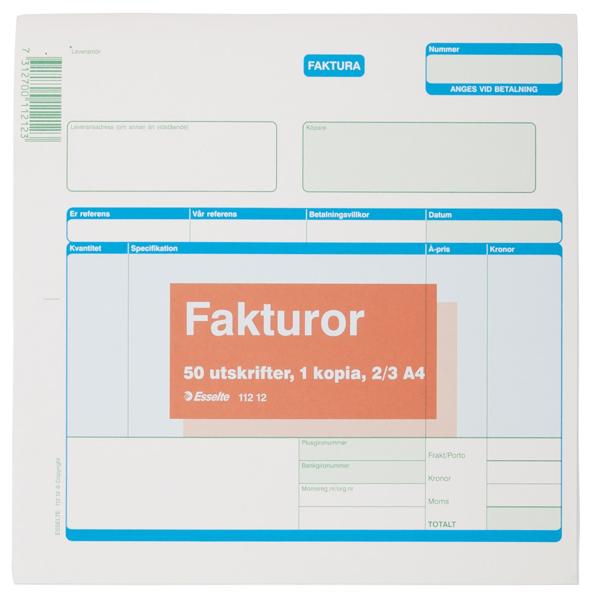Fakturor Esselte 2/3 A4 onumrerade