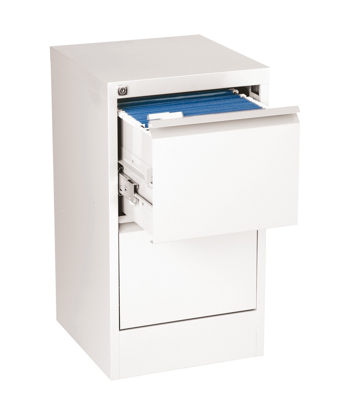 Flexibelt och robust hängmappsskåp av svetsad stålplåt. Rymmer ca 65 A4-mappar/låda. Vippspärr för extra säkerhet – bara en låda går att dra ut åt gången. 5 års funktionsgaranti. Miljöanpassad pulverlackering. Centrallås med 2 nycklar. Bredd x djup: 410 x 630 mm.