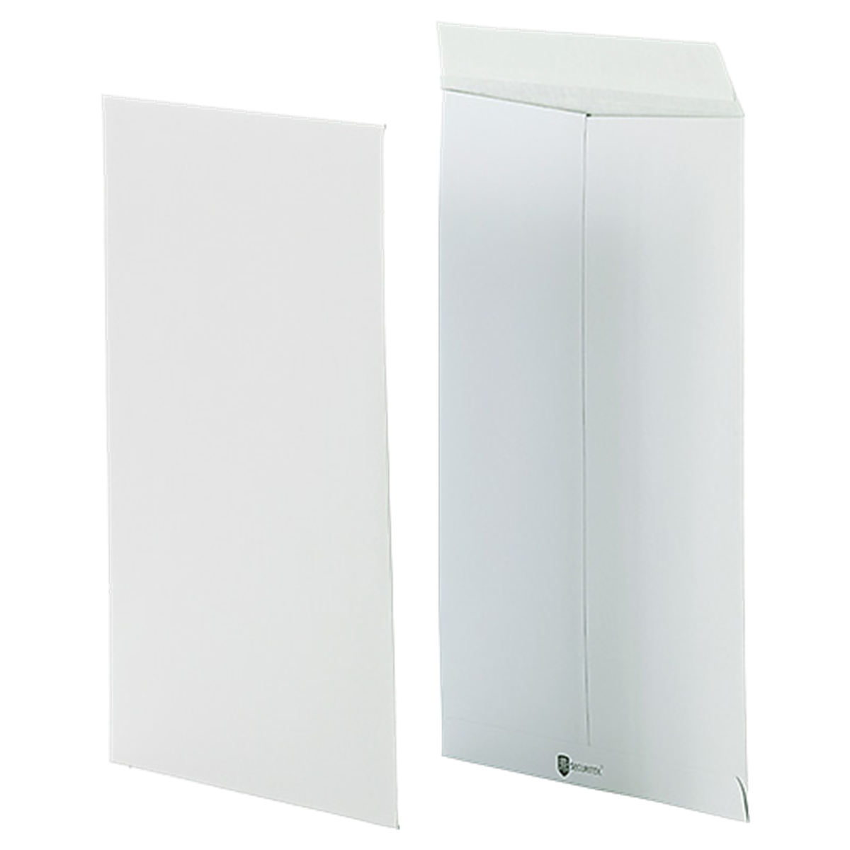 Tillverkat av vit PFP (Papper Film Papper). Hög rivstyrka och vattenresistent. Självhäftande klaff, Peel & Seal. Kan med fördel förses med flerfärgstryck, går att göra tilltryck i mindre upplaga. 100 st/förp.