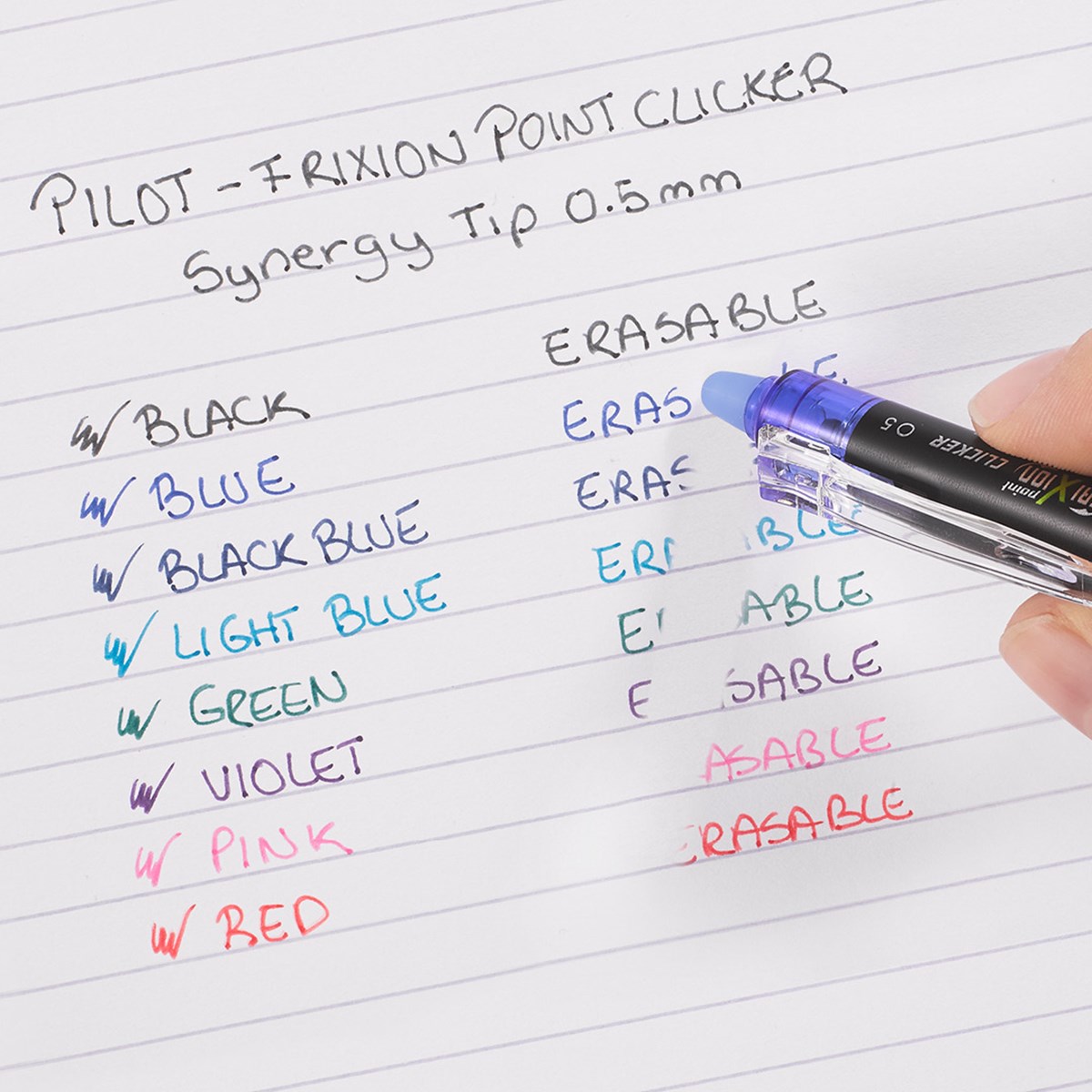 Raderbar penna med klickmekanism. Kulbredd 0,5 mm. Kulan i spetsen kan tack vare små gropar i kulan, röra sig jämt över pappret för en silkeslen upplevelse. Pennkroppen har samma färg som bläcket. 12 st/förp.