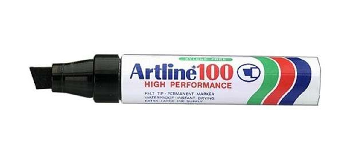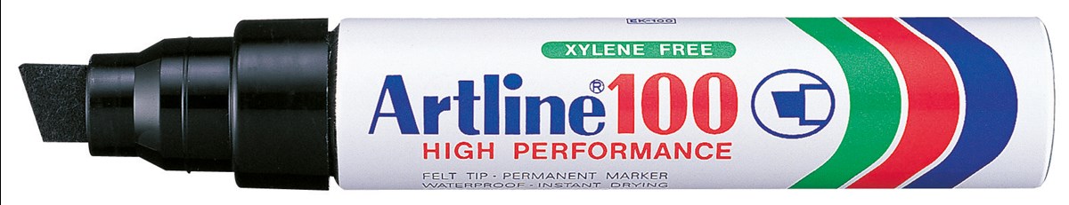 Pennkropp av aluminium och hårdpressad filtspets. För permanent märkning på de flesta underlag. Påfyllningsbar. 7,5-12 mm spetsbredd. 6 st/förp.