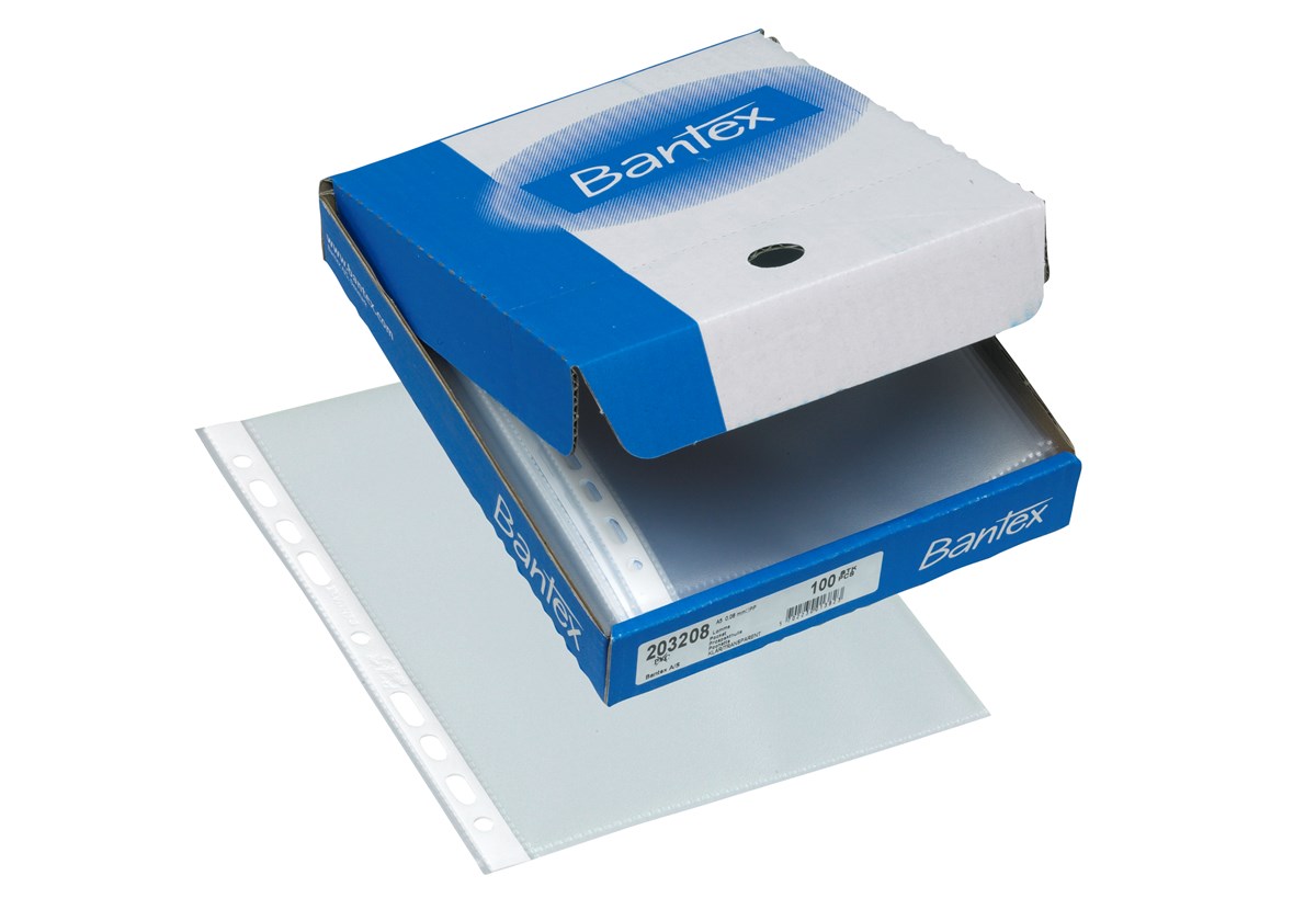 Reflexfri ficka av polypropylenplast. Öppen i överkant. Vit förstärkt rygg med universal hålning. Kopiesäker. A5. Tjocklek: 0,08 mm. 100 st/förp.