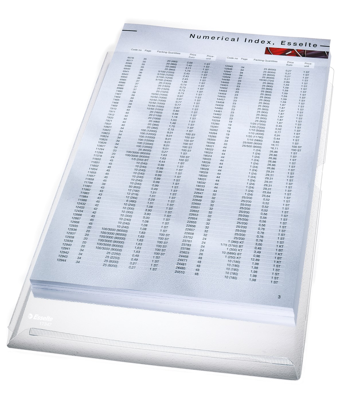 Mycket hållbar aktmapp i glasklar 0,17 mm PVC. Bälg som går att expandera 20 mm. Passande för stora dokument och kataloger på upp till 200 sidor. Öppen topp och högersida. A4-format. 5 st/förp.