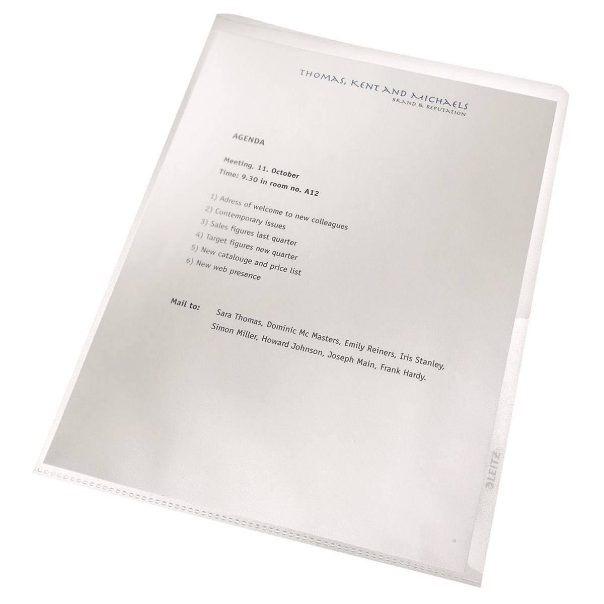Klar plastmapp av 100% återvunnet material och som är 100% återvinningsbar. Präglad 0,14 mm. Kopiesäker. För upp till 40 A4-ark. 100 st/förp.