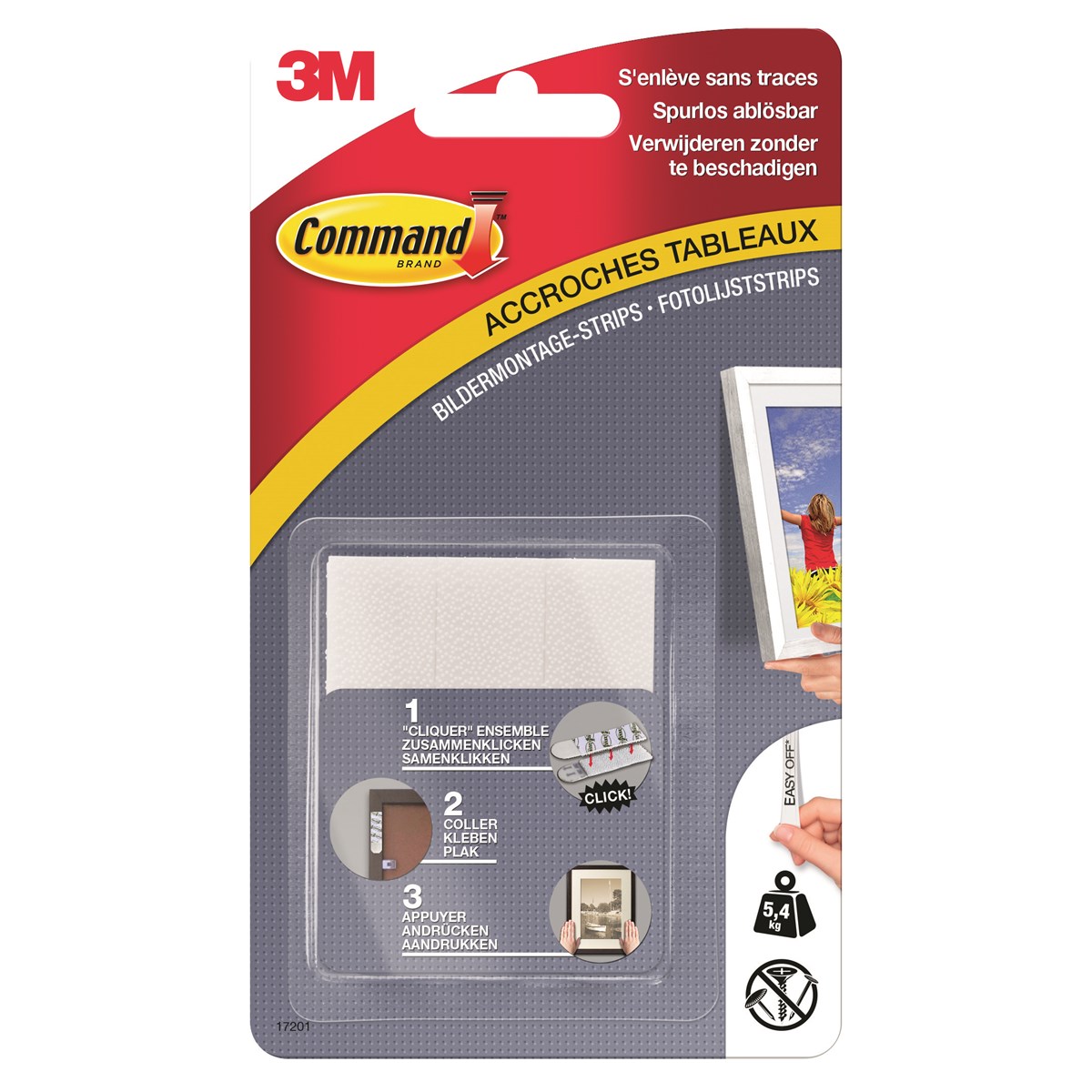Smart montering utan spik eller skruv. Monteringsstrips med kardborrliknande klicksystem. Avancerat häftämne som gör att du enkelt fäster upp tavlor och skyltar m.m. Häftämnet lämnar inga märken eller limrester. Krok eller hållare går att fästa upp igen med nytt strips. Kapacitet: 5,4 kg.