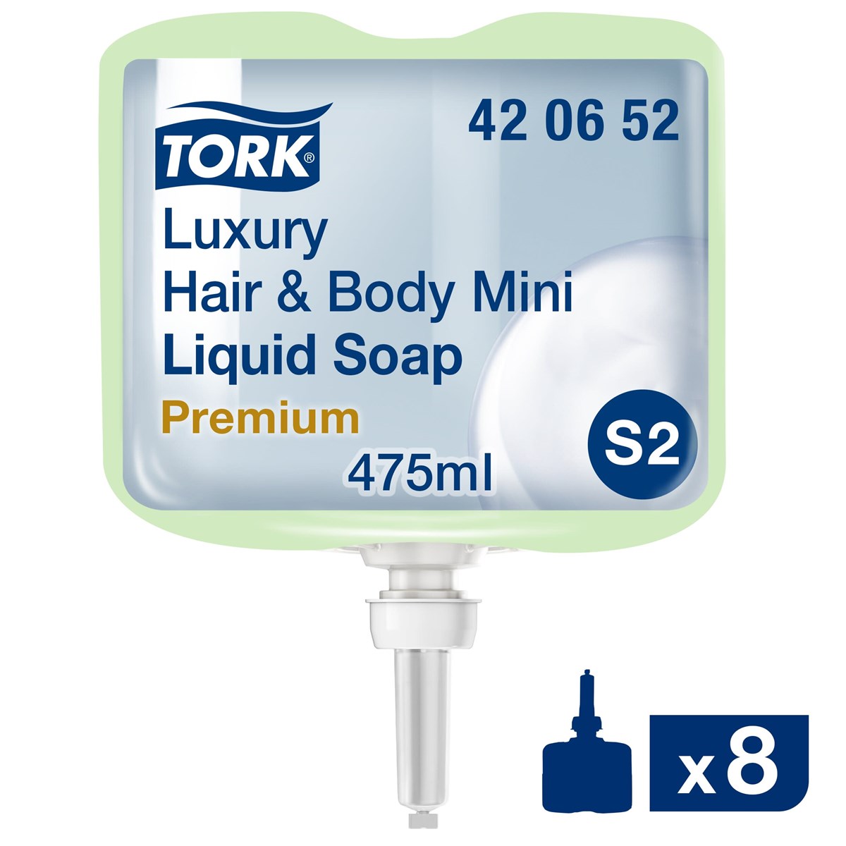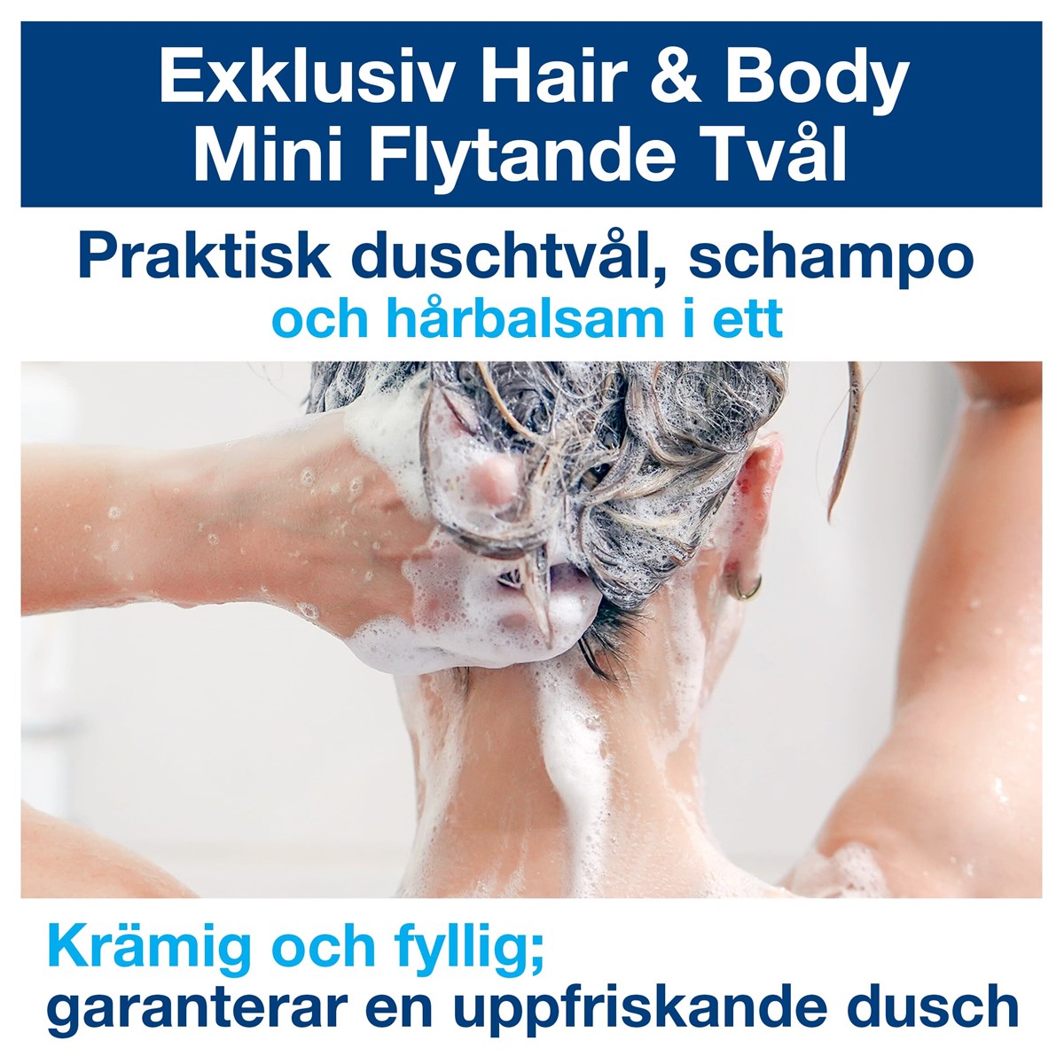En allt-i-ett-produkt som kan användas som schampo, balsam och duschtvål. Den har en fräsch doft och en exklusiv kombination av milda rengörande ämnen och återfuktare som ger hår och hud en mjuk, len och fräsch känsla. Flaskan krymper ihop efter hand som den används, vilket minskar avfallsvolymen. 475 ml. 8 st/förp.