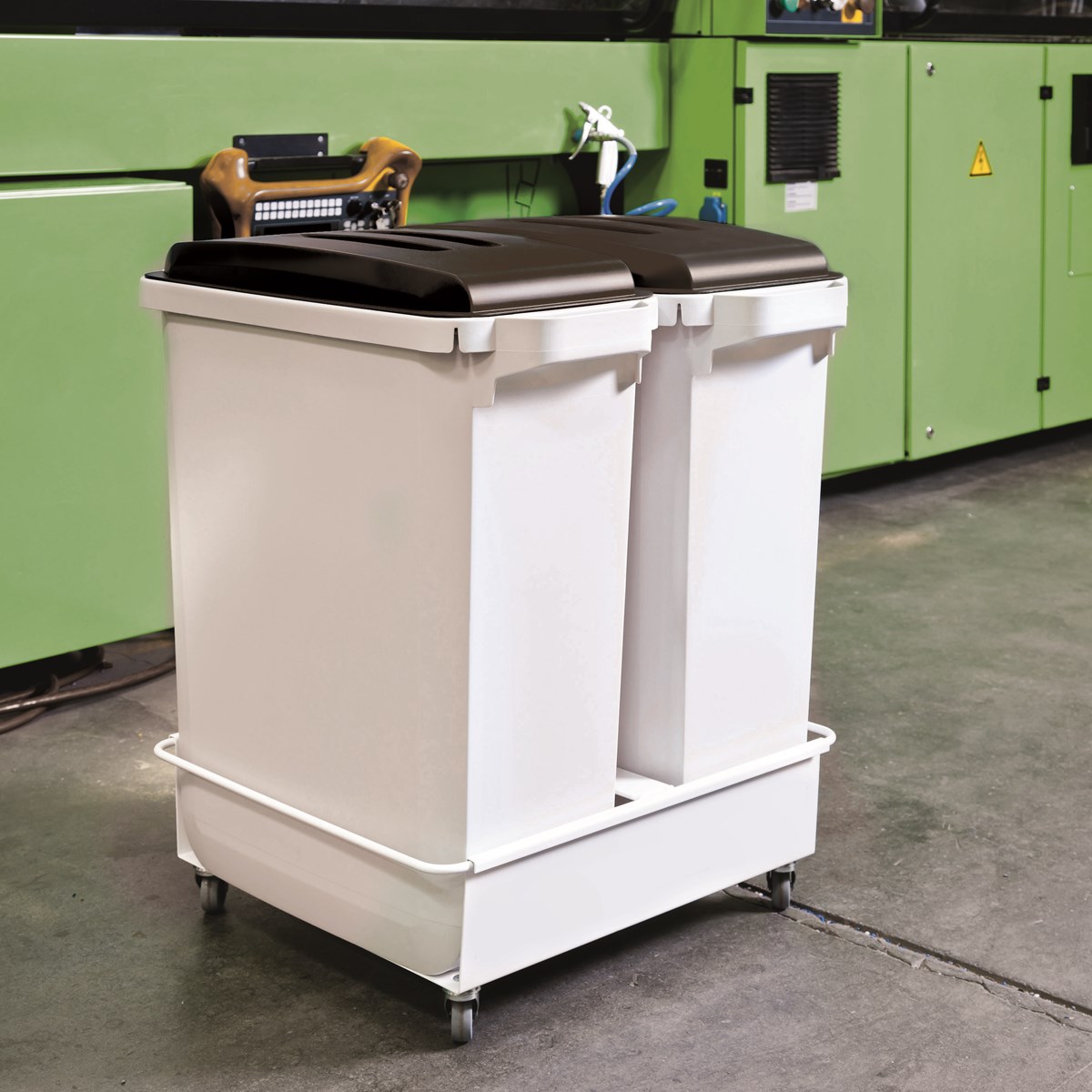 Vagn för två Durabin 60L. Tillverkad i vitlackerad plåt.