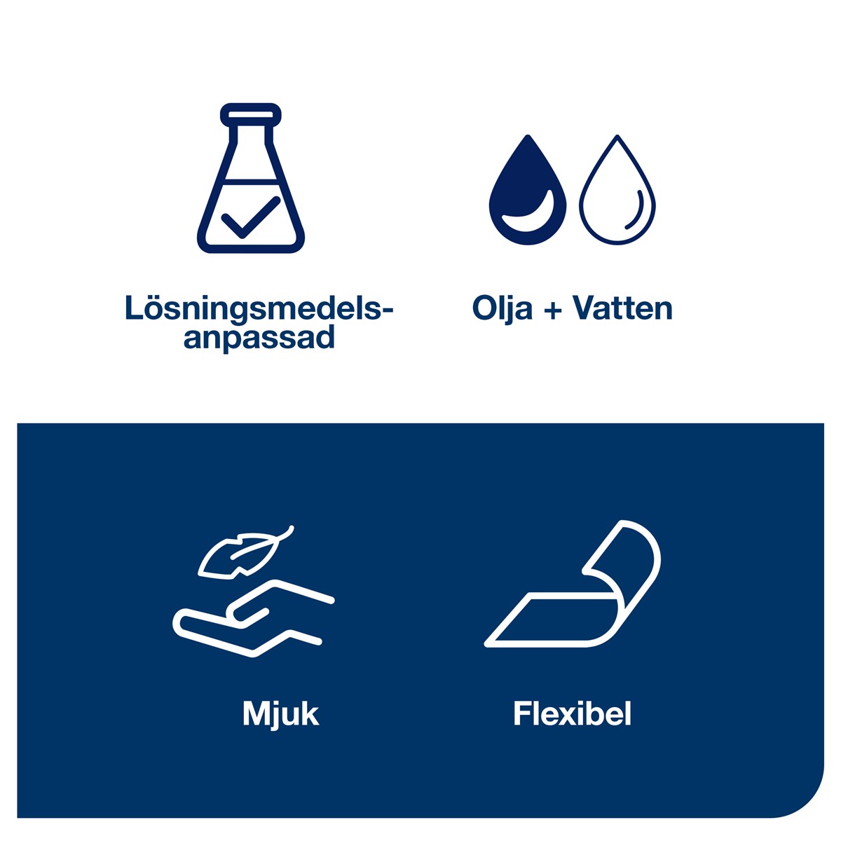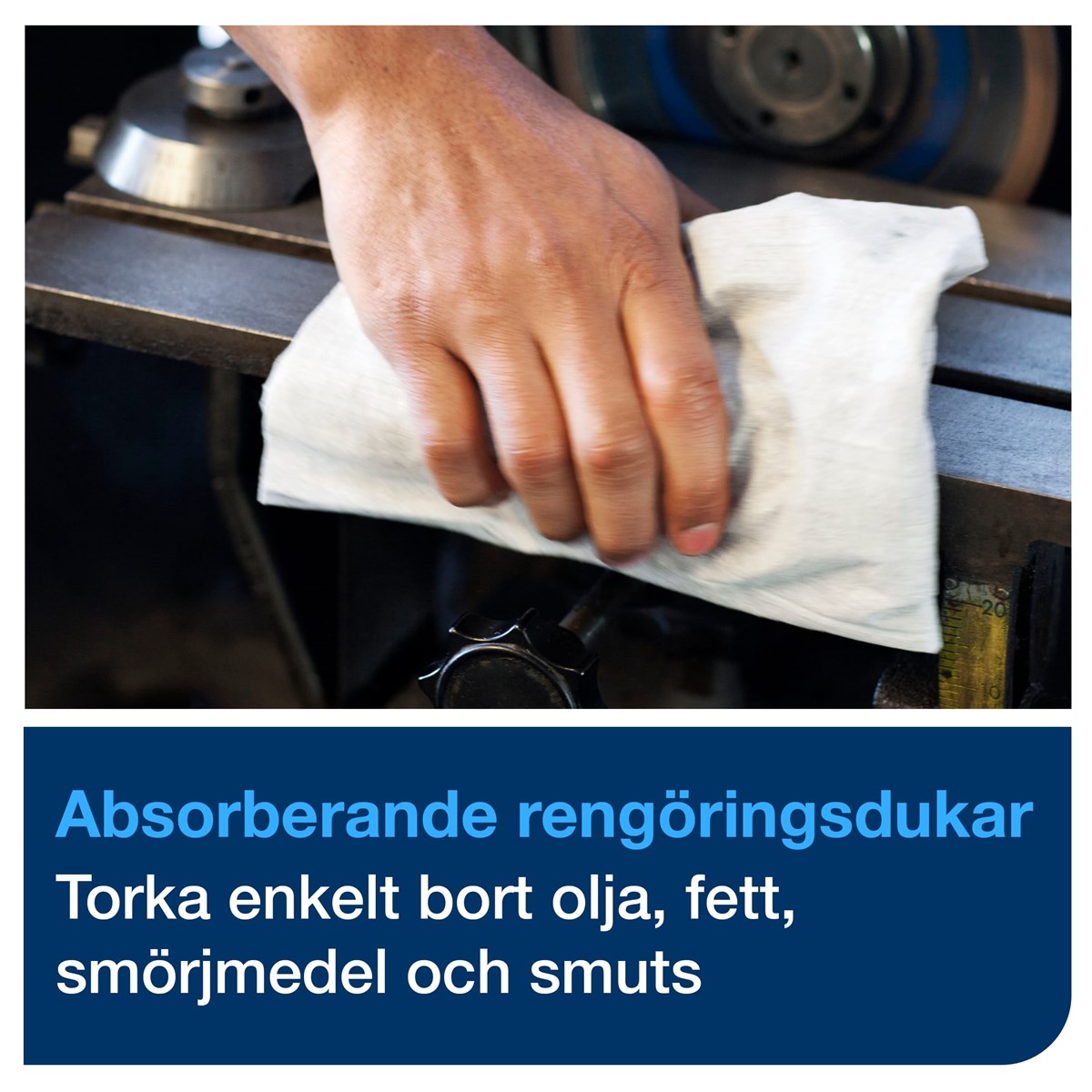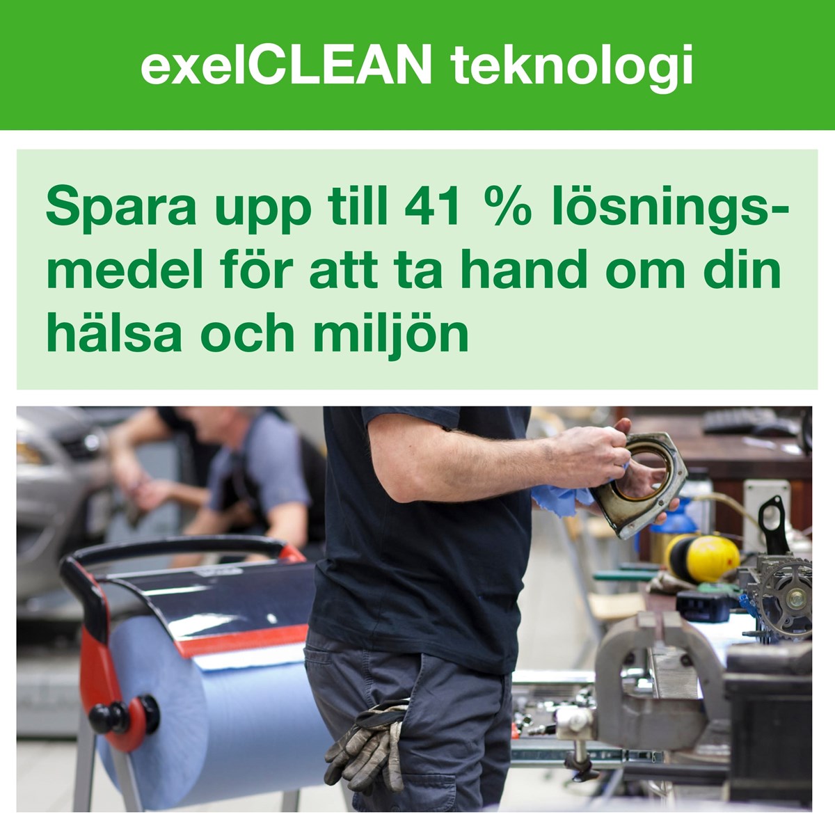 Mjukt och flexibelt avtorkningspapper för svåråtkomliga ytor Passar för små till medelstora industriella rengöringsuppgifter Hög absorptionsförmåga tar bort olja, fett och smuts exelCLEAN-material sparar på lösningsmedel Passar till golvställ och väggställ