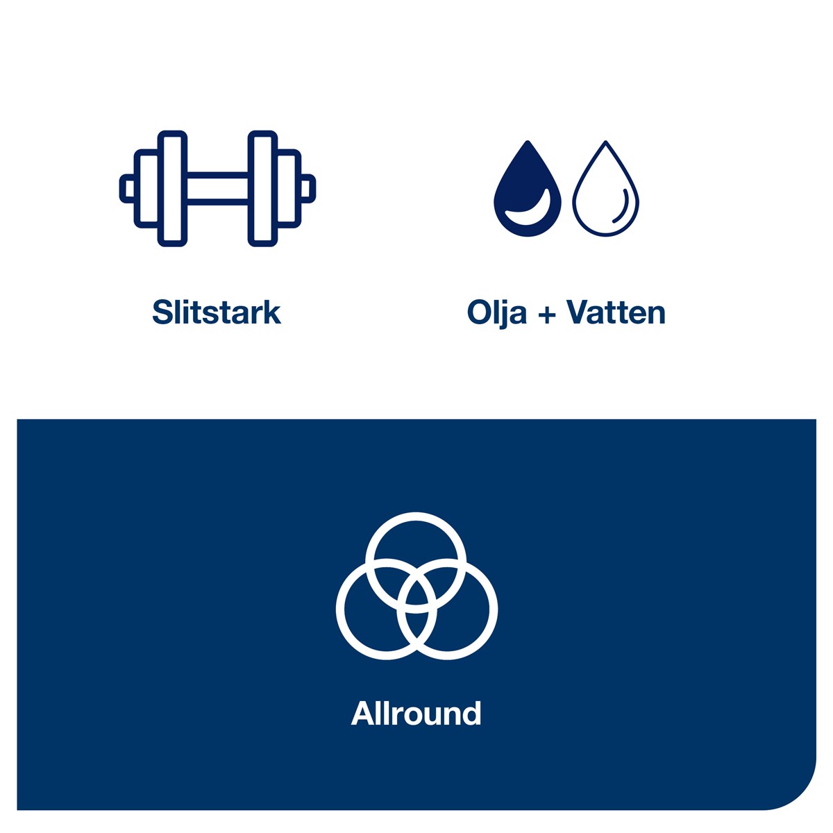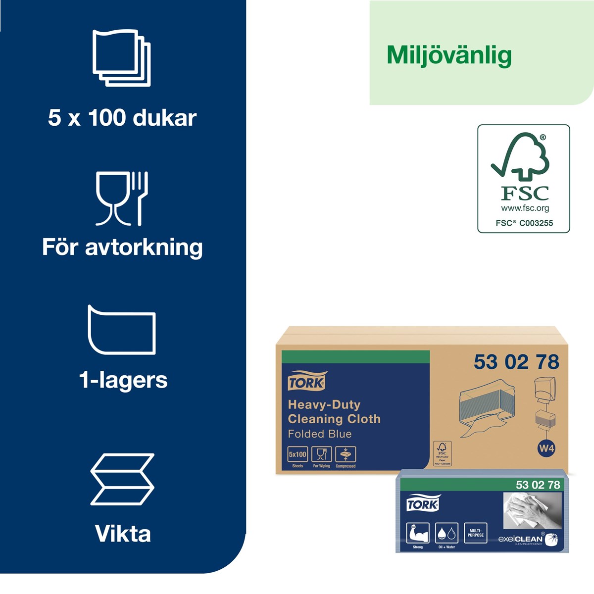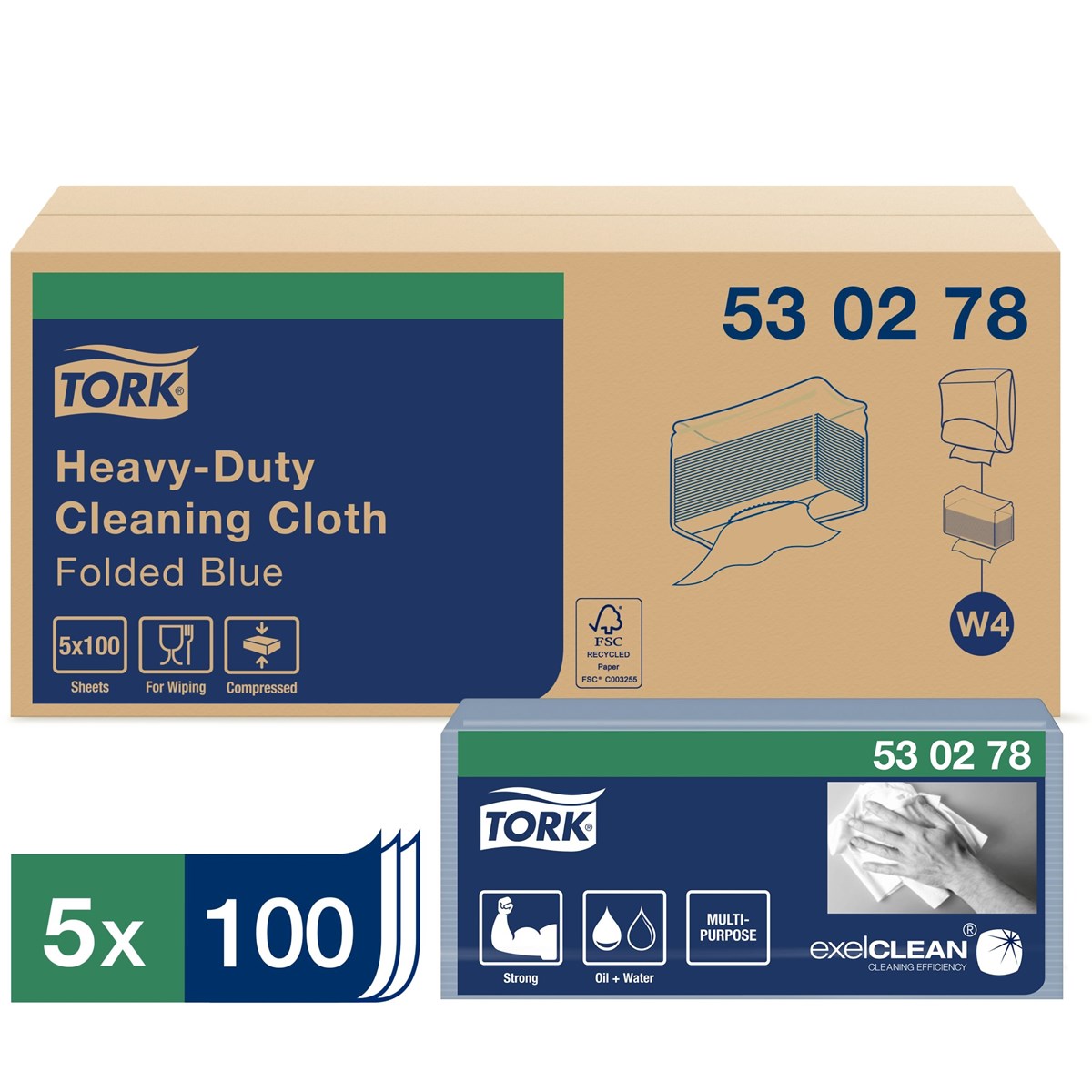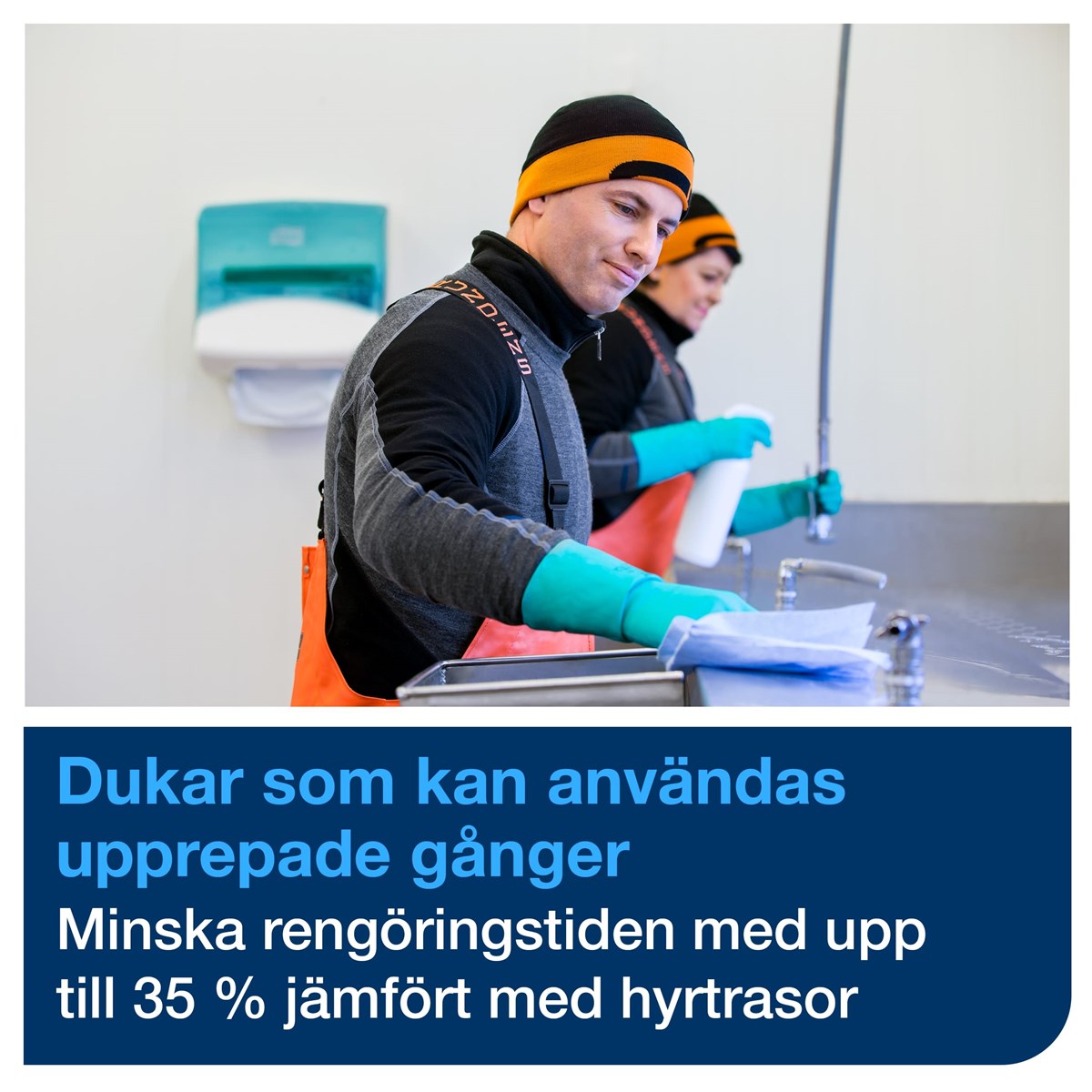 Stark och absorberande rengöringsduk för grovstädning Allround och kan användas upprepade gånger, vilket minskar avfallet Tjockt material som skyddar händerna exelCLEAN material sparar på lösningsmedel Tork Easy Handling förpackningen för enklare hantering