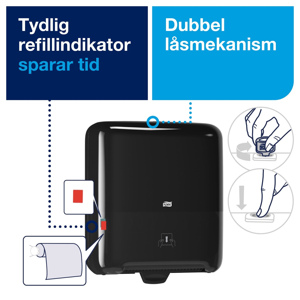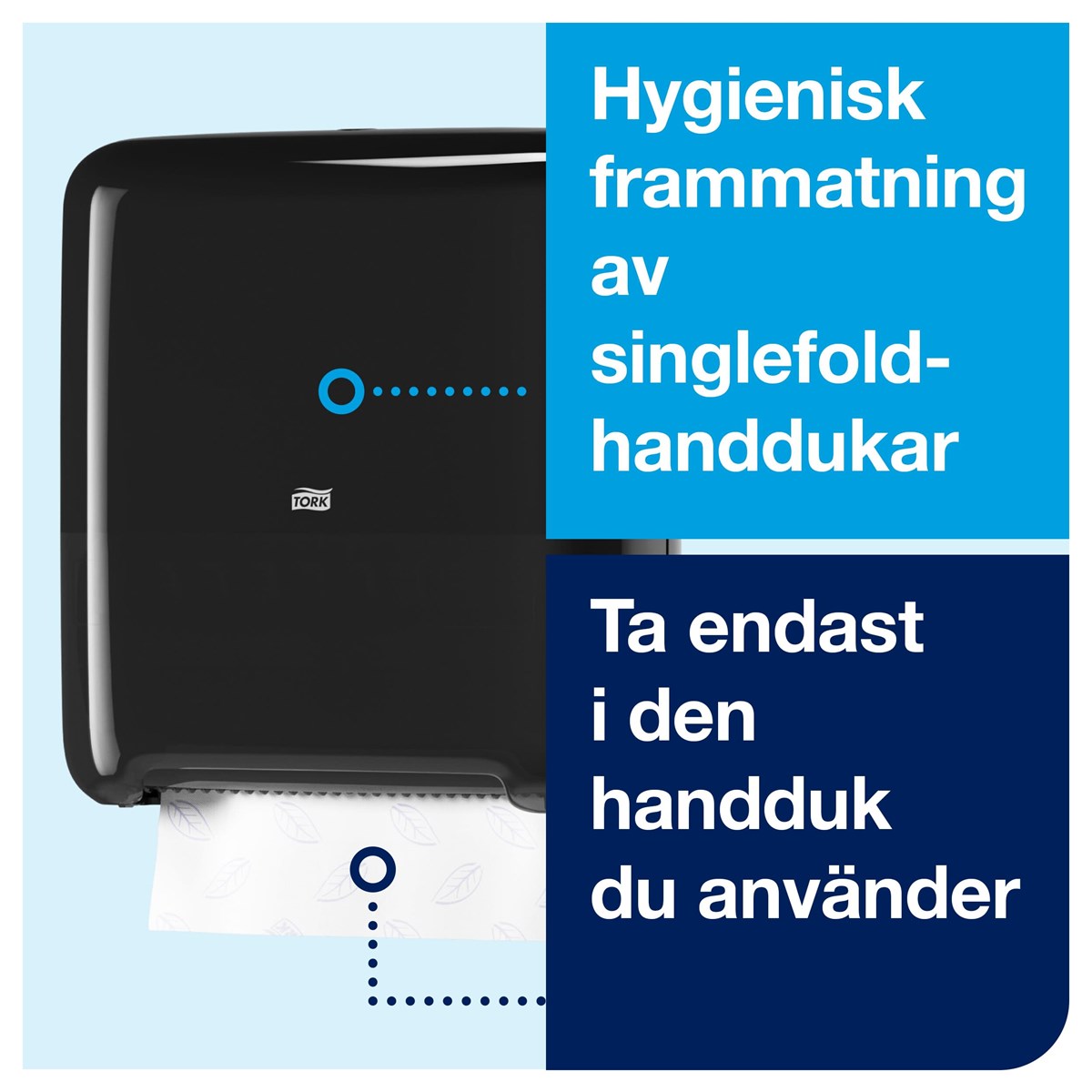 Hygienisk hållare som matar fram en handduk åt gången. Enkel och snabb påfyllning. Hög kapacitet. Mått: (H x B x D) 37,2 x 33,7 x 20,3 cm.