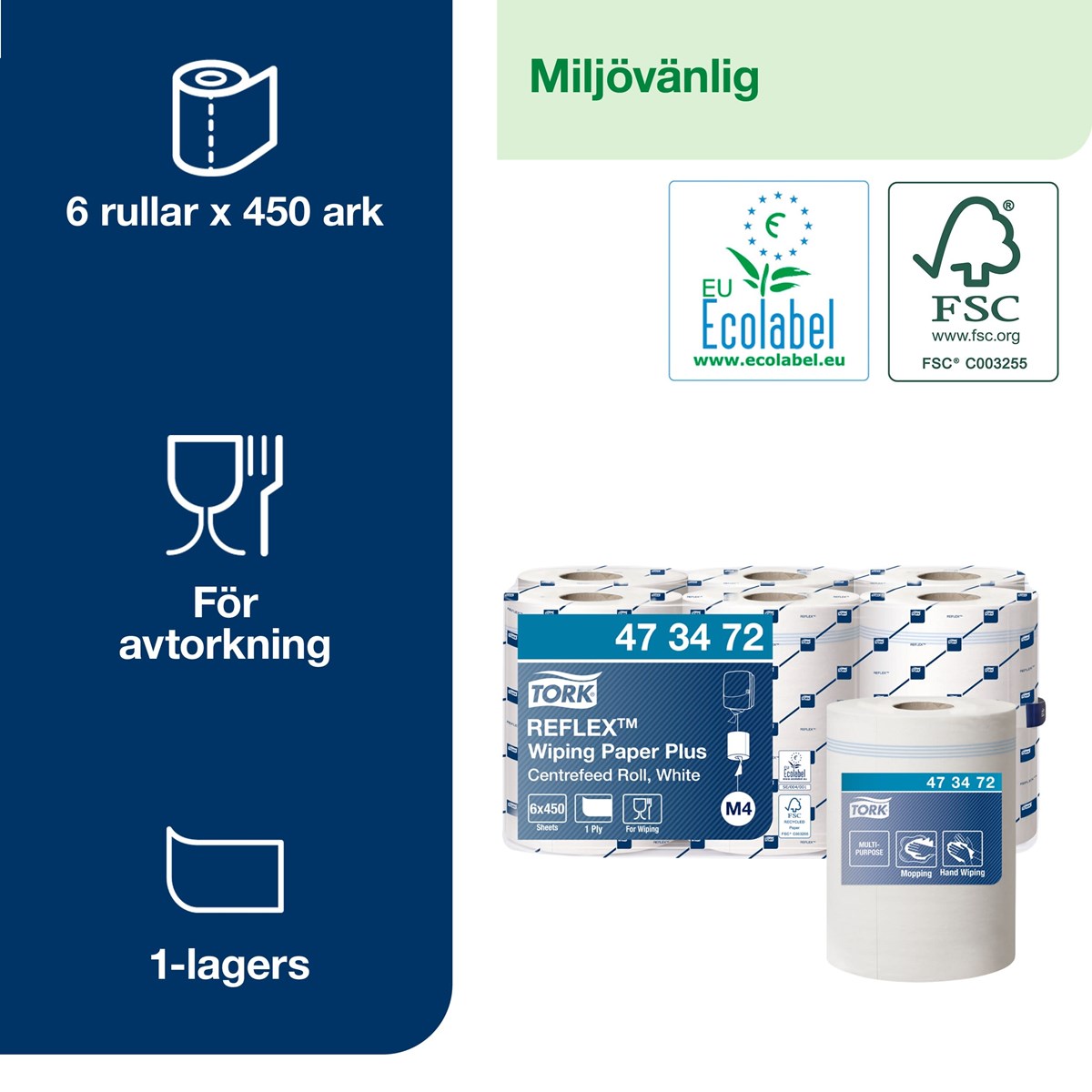 Våtstarkt, perforerat och centrummatat papper. Godkänt för livsmedelskontakt. 6 rullar/förp.