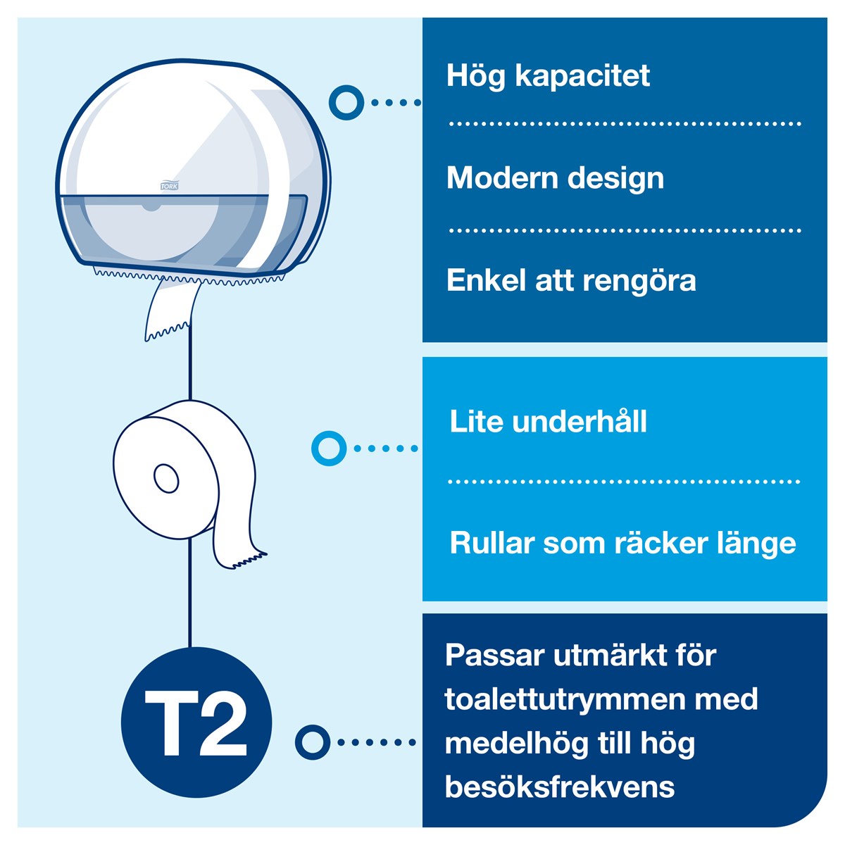 Modern design för toalettutrymmen med medelhög till hög besöksfrekvens Hög kapacitet som minskar underhållstiden Sluten dispenser för förbättrad hygien